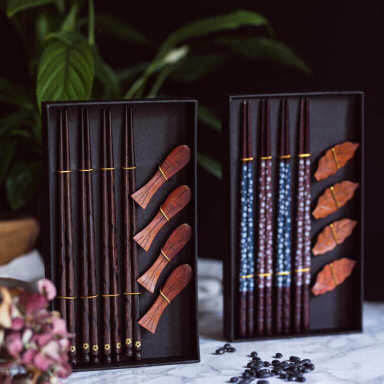 • Japanese-Chinese-Korean Style Wooden Spoon & Chopstick Gift Set