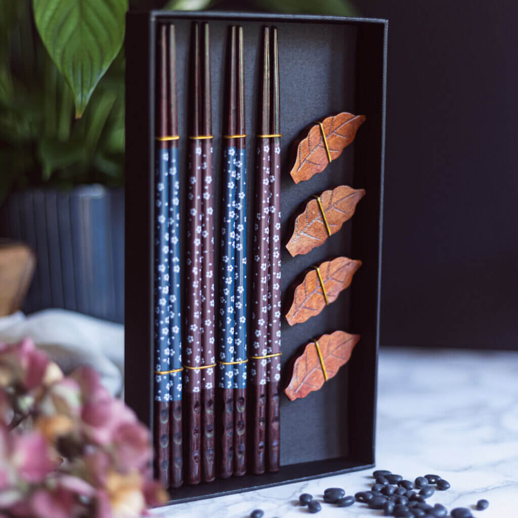• Japanese Chinese Style Chopstick Gift Set – 4 Pairs of Wooden Chopsticks + 4 Chopstick Rests