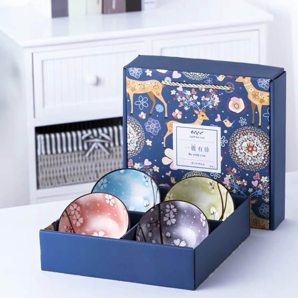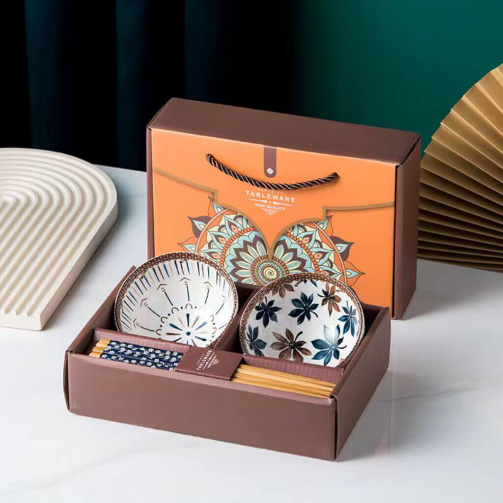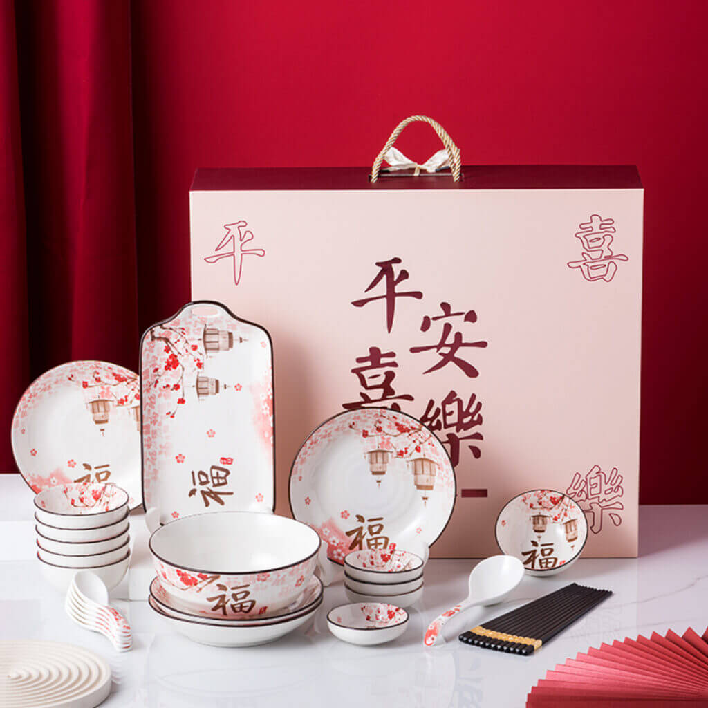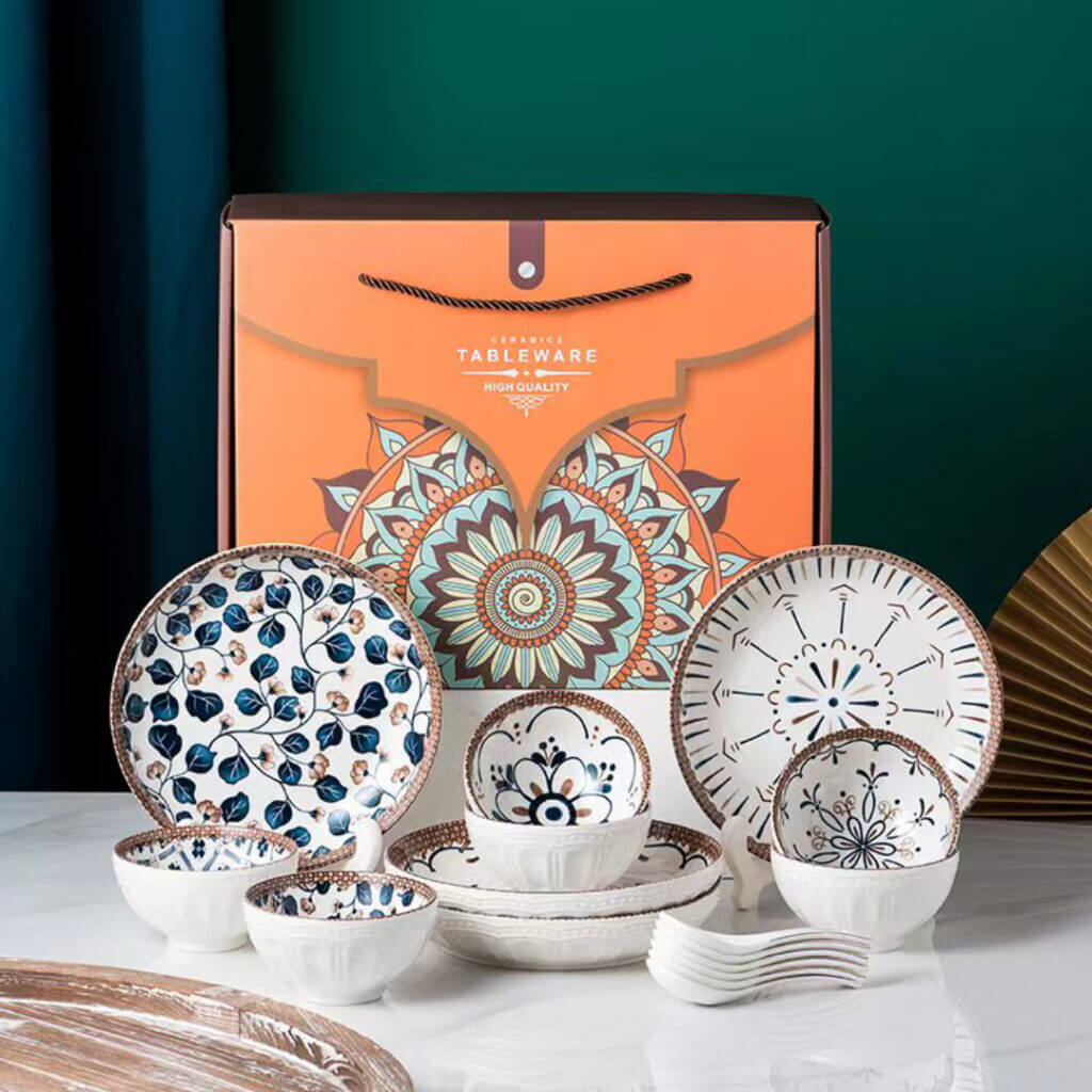 Japanese Chinese Style Rice Bowls Plates Spoons Dinnerware Gift Set-16 Pieces