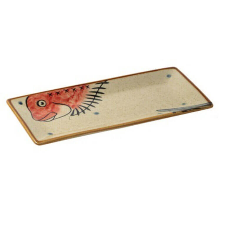 Japanese Style Red Fish Ceramic Sushi Serving Platter Rectangular Sushi Plate