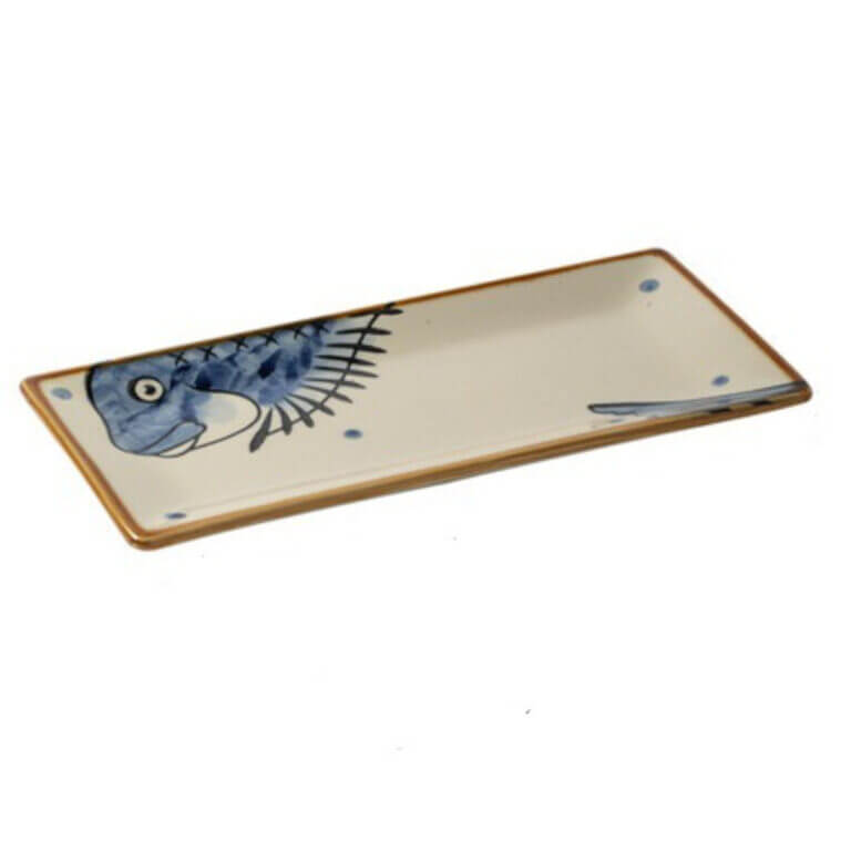 Japanese Style Blue Fish Ceramic Sushi Serving Platter Rectangular Sushi Plate