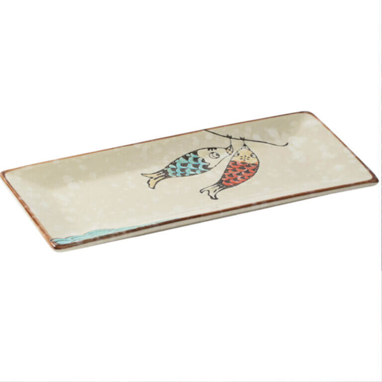 Japanese Style Double Fish Ceramic Sushi Serving Platter Rectangular Sushi Plate